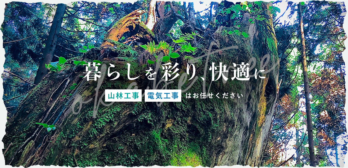 『株式会社okabe(オカベ)ツリー』は、林業全般から造園工事・電気工事・エアコン工事の施工から管理まで、一貫して自社で対応しています。